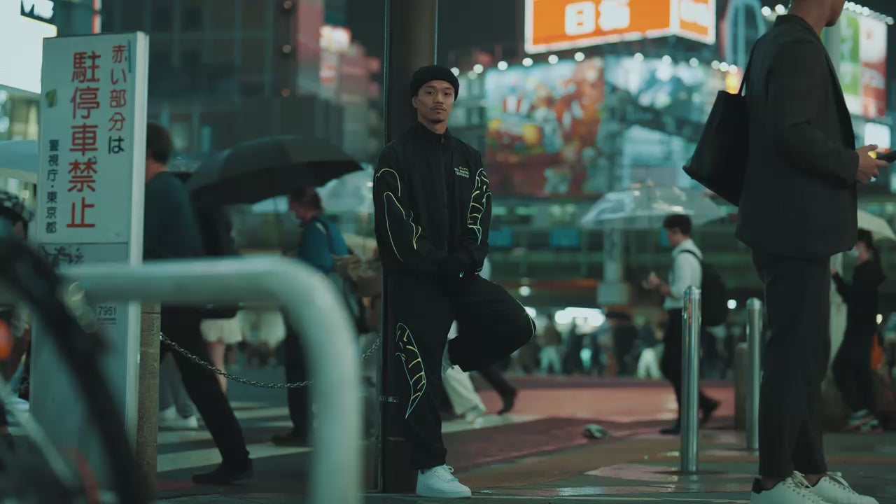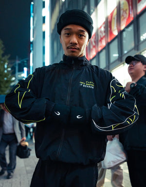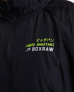 The Nakatani x BOXRAW Track Jacket offers an oversized fit, featuring mesh lining for optimal breathability and side zipped pockets for secure storage. Finished with the Katakana "Big Bang" marked inside the Strike logo.
