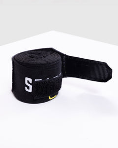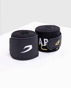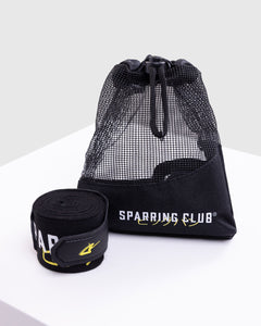 Trusted to protect Nakatani's most valuable weapons, these 4.5m wraps are crafted from a supple stretch-cotton blend and finished with reinforced rubberised wrist straps for added support. The tabric sits soft yet firm against the skin, allowing precise variation in hand and knuckle positioning. Finished with the repeated SPARRING CLUB graphic and Katakana "Big Bang," honouring the undefeated legacy of Junto Nakatani.