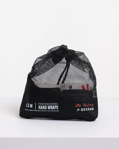 Made from a supple stretch cotton blend, the 4.5m BOXRAW Hand Wraps feature a patent-pending hook and loop closure on the thumb loop, saving you time as you wrap or unwrap your hands. The reinforced rubberised wrist strap gives added support while the custom-developed fabric sits soft but firm to the skin, allowing for the perfect amount of variance in hand and knuckle positioning. The choice of World Champions comes complete with the signature Ring detailing.