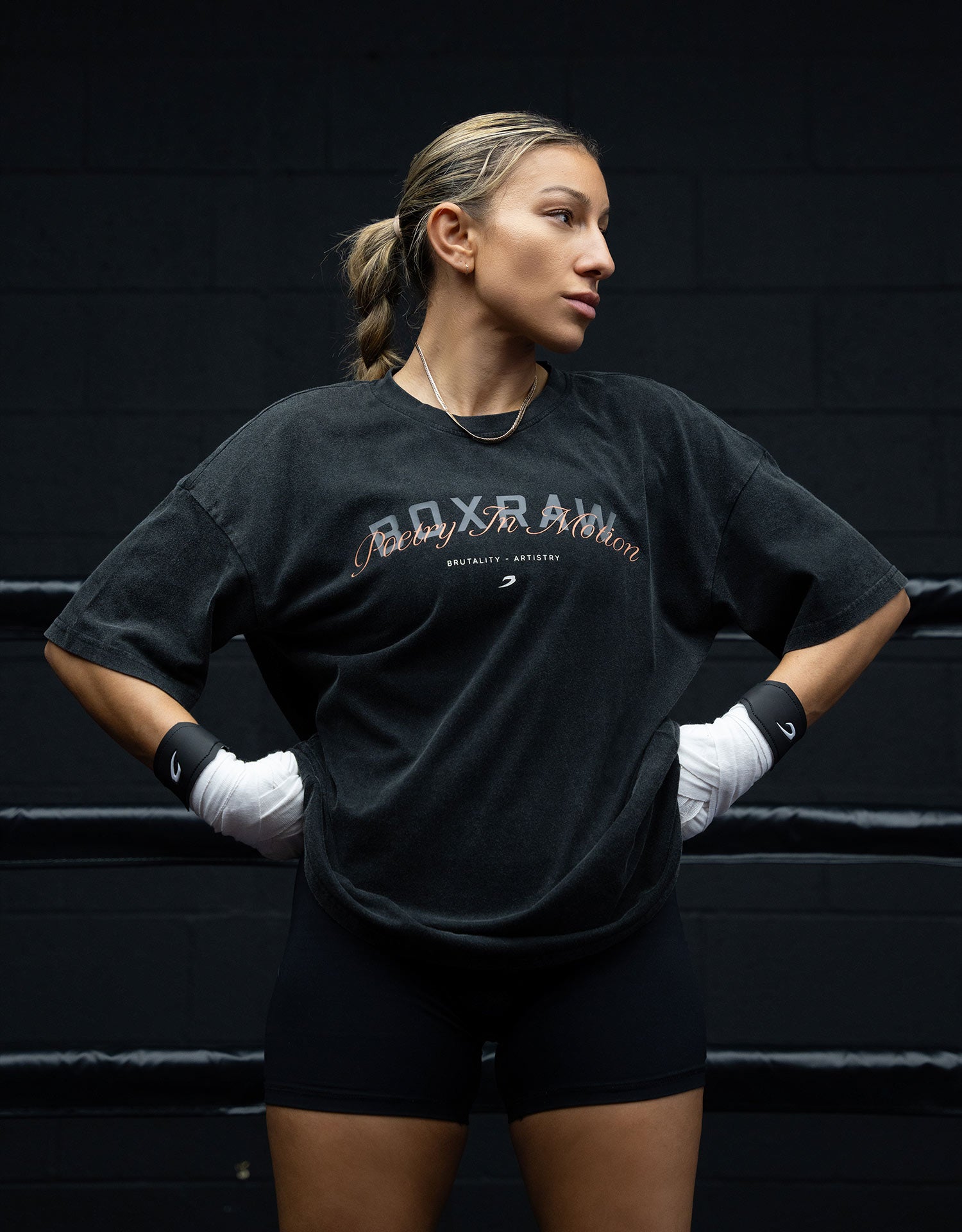 Crafted from a durable stretch cotton blend, this oversized t-shirt is finished with our "Brutality - Artistry" poem etched across the back.