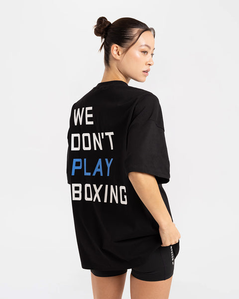 This oversized stretch cotton tee offers the perfect balance of breathability, structure and flow to accompany you through the rounds, round after round. Featuring our signature WE DON'T PLAY BOXING® slogan across the back, this tee serves to remind the world of a well-known fact within our community: You can play football, you can play basketball and you can play baseball but, you can't play boxing.